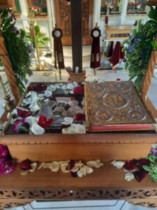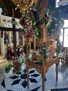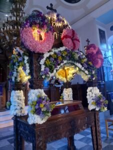 Την ίδια ώρα, στον Ιερό Ναό Αγίου Γερασίμου στην Ακτή Δυμαίων, ο Επιτάφιος στολίστηκε με ιδιαίτερη φροντίδα, δημιουργώντας μια εικόνα που συνδύαζε την παράδοση με την αισθητική αρτιότητα. Πιστοί κάθε ηλικίας βρέθηκαν στον ναό, συμβάλλοντας είτε με την παρουσία είτε με την προσφορά τους, ενισχύοντας το αίσθημα της κοινότητας.