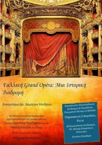 Την Παρασκευή, 3 Απριλίου 2026, ο Ελληνο-γαλλικός Σύνδεσμος και το Πανελλήνιο Πνευματικό Κέντρο “ο Φίλων” πραγματοποίησαν στην Αίθουσα Επιστήμης, Τέχνης και Φιλοσοφίας Ευάγγελος Μουτσόπουλος του Ελληνογαλλικού Συνδέσμου εκδήλωση με τίτλο “Γαλλική Grand Opéra, μια ιστορική διαδρομή”.