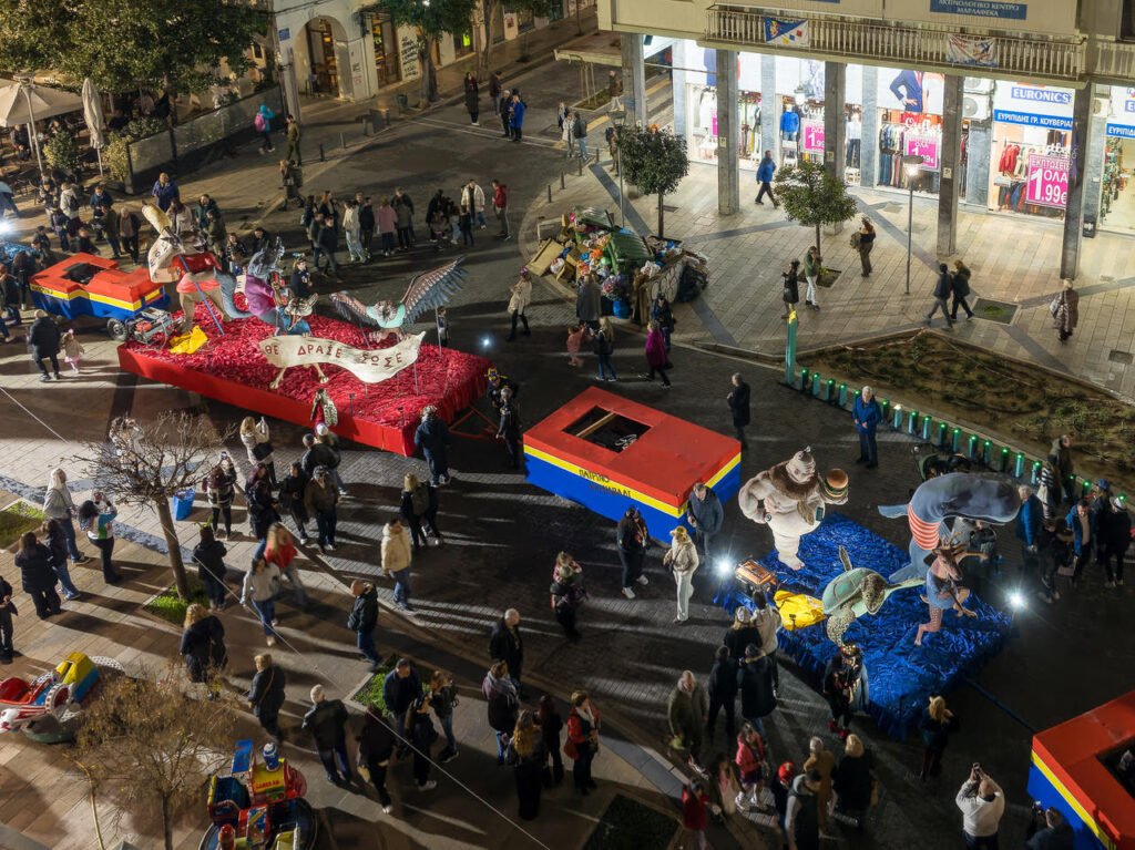 Τα φωταγωγημένα άρματα σε συνδυασμό με τον καρναβαλικό διάκοσμο και φωτισμό της πόλης έδωσαν μια εντυπωσιακή εικόνα στους κεντρικούς δρόμους και στην πλατεία Γεωργίου Α΄ στην οποία και παρέμειναν για μεγάλο χρονικό διάστημα. Εκεί ενθουσιασμένος ο κόσμος-μικροί και μεγάλοι-τα περιεργαζόταν, τα θαύμαζε και φωτογραφιζόταν μαζί τους. Η πλατεία πλημμύρισε από χρώμα και ξεχείλισε από αυθεντικό καρναβαλικό κέφι, σάτιρα και εμπνευσμένες καρναβαλικές-καλλιτεχνικές μορφές, που οι δημιουργοί του Καρναβαλικού Εργαστηρίου μας πρόσφεραν απλόχερα.