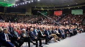 Το σκηνικό μέσα στην αίθουσα ήταν ενδεικτικό της προσπάθειας ανανέωσης. Πράσινες και λευκές σημαίες τοποθετημένες με επιμέλεια στις θέσεις, σύγχρονη οπτική παραγωγή με γερανούς, κάμερες και drone, αλλά και μια μεγάλη LED οθόνη συνέθεσαν μια εικόνα διαφορετική από τα προηγούμενα συνέδρια, πιο δυναμική και προσαρμοσμένη στις απαιτήσεις της εποχής. Το ενδιαφέρον παρέμεινε αμείωτο παρά την καθυστέρηση στην έναρξη, ενώ τα συνθήματα και τα χειροκροτήματα έδιναν ρυθμό στην εξέλιξη των εργασιών.