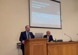 Ο Σωτήρης Παπαϊωάννου παρουσίασε τη μακροοικονομική εικόνα του 2026 και τις προκλήσεις για την αγορά, ενώ ο Θέμης Χατζηιωάννου ανέδειξε τη σχέση του πτωχευτικού πλαισίου με τις τεχνολογικές εξελίξεις και τον ρόλο της τεχνητής νοημοσύνης στη διαχείριση των οφειλών.