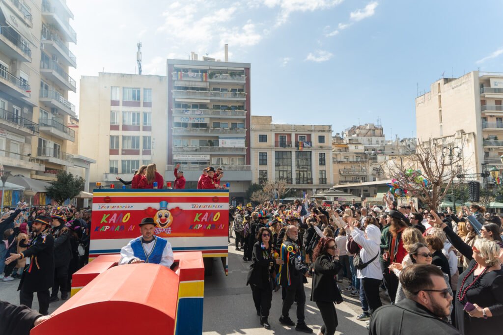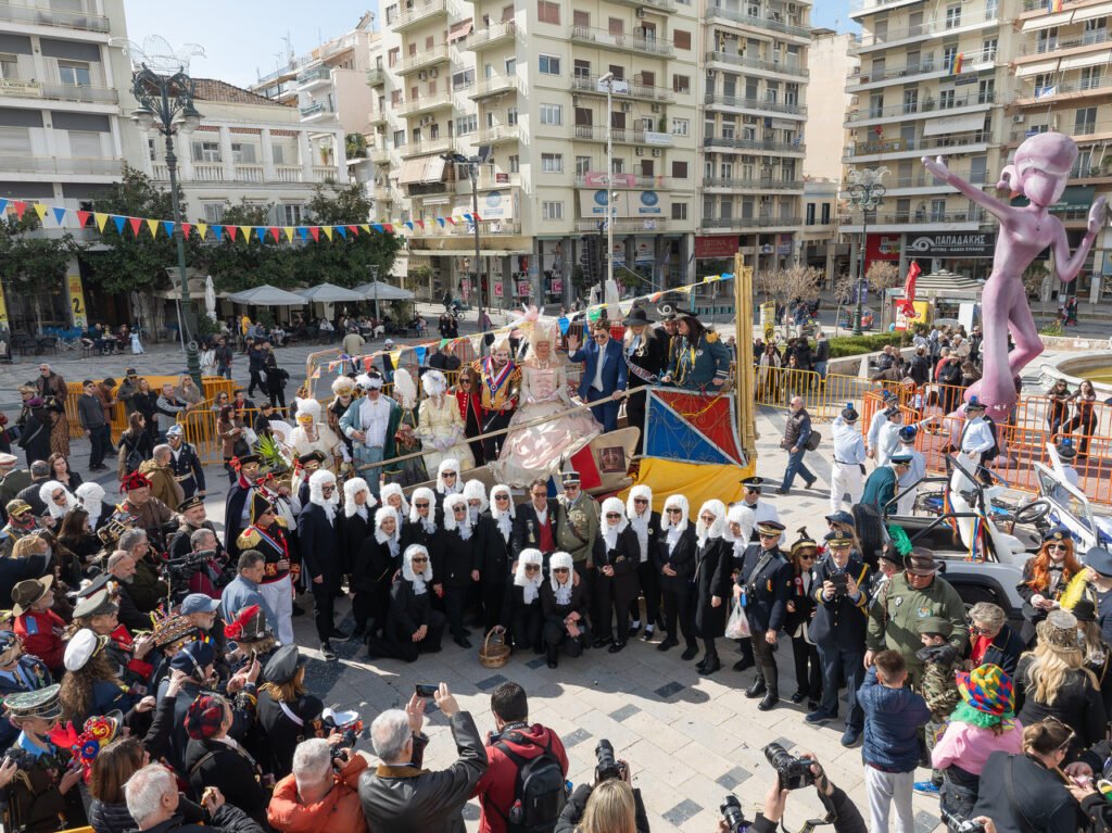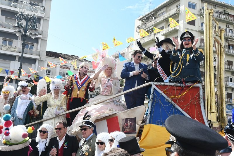 Η πόλη «ντύθηκε» με έντονο καρναβαλικό χρώμα, σάτιρα και δημιουργικότητα. Οι Στρατηγοί και Πρέσβεις του Καρναβαλιού, με εντυπωσιακές στολές και εμπνευσμένα στολισμένα οχήματα-λιμουζίνες, χάρισαν μοναδικές στιγμές. Στην καρναβαλική τους «περιοδεία» ξενάγησαν τη Μαρία Αντουανέτα, τον Λουδοβίκο, τον Μακρόν και τη Brigitte Patras, μετατρέποντας το κέντρο της πόλης σε μια σκηνή σατιρικού θεάτρου δρόμου.